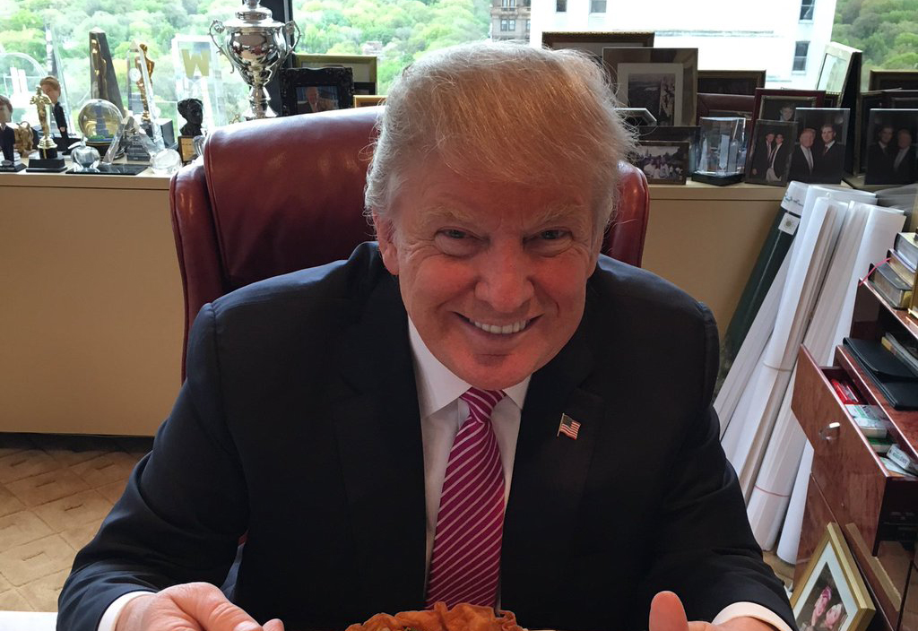 De acuerdo con el tabloide liberal The Daily News, Trump “celebró el Cinco de Mayo de la manera más Donald Trump posible, difundiendo una foto de él sonriendo sobre un falso platillo mexicano al tiempo que alardea sobre su negocio”.