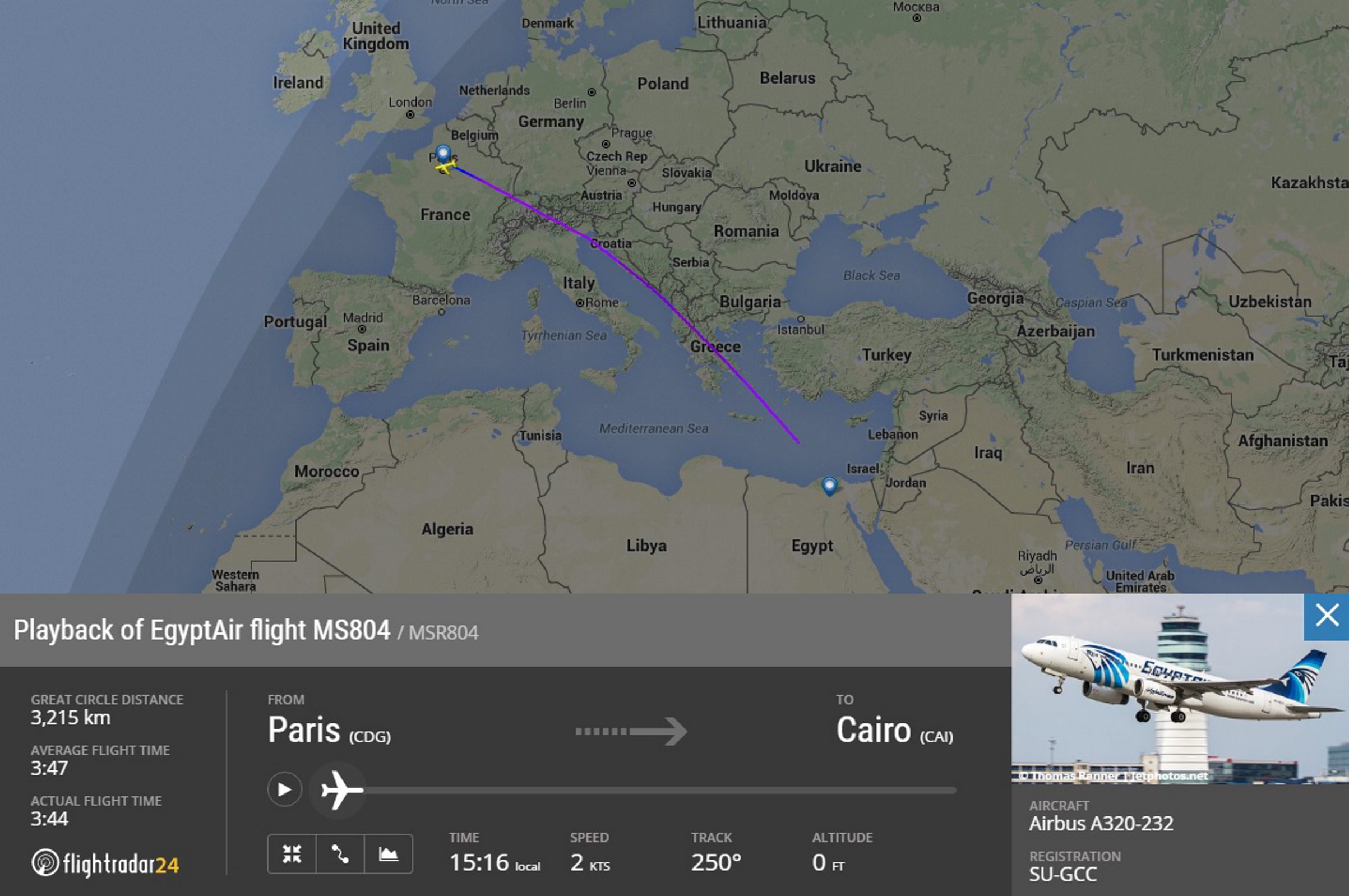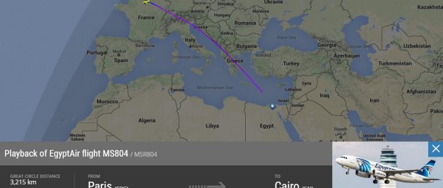 El vuelo 804 de EgyptAir, que cubría la ruta París-El Cairo, desapareció de los radares la madrugada de este jueves alrededor de las 02:45 horas locales de Egipto (01:45 GMT), sin supuestamente haber emitido ninguna señal de alarma.