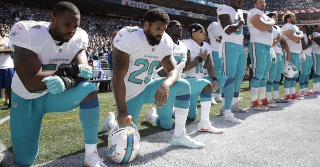 Los jugadores, de los equipos de los Delfines de Miami y de los Jefes de Kansas City, optaron así unirse a las protestas que iniciaron el 27 de agosto pasado en un juego de pretemporada el mariscal de campo de los 49’s de San Francisco, Colin Kaepernick.