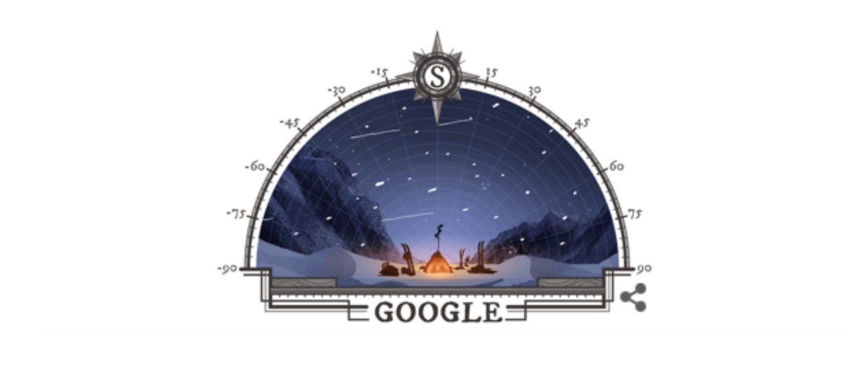 Con un doodle animado, en el que se aprecia una casa de campaña en medio de las montañas y la nieve, la multinacional recuerda dicha expedición liderada por el explorador noruego Roald Amundsen, quien se convirtió en el primer hombre en llegar al Polo Sur.