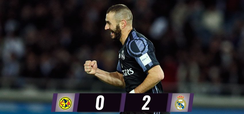 En el Estadio Internacional de Yokohama, las Águilas dieron batalla a los madridistas, pero no les alcanzó y el triunfo merengue lo firmaron el francés Karim Benzema, al minuto 45+2, y el portugués Cristiano Ronaldo, al 90+3, para avanzar a la gran final del domingo contra el club japonés Kashima Antlers.