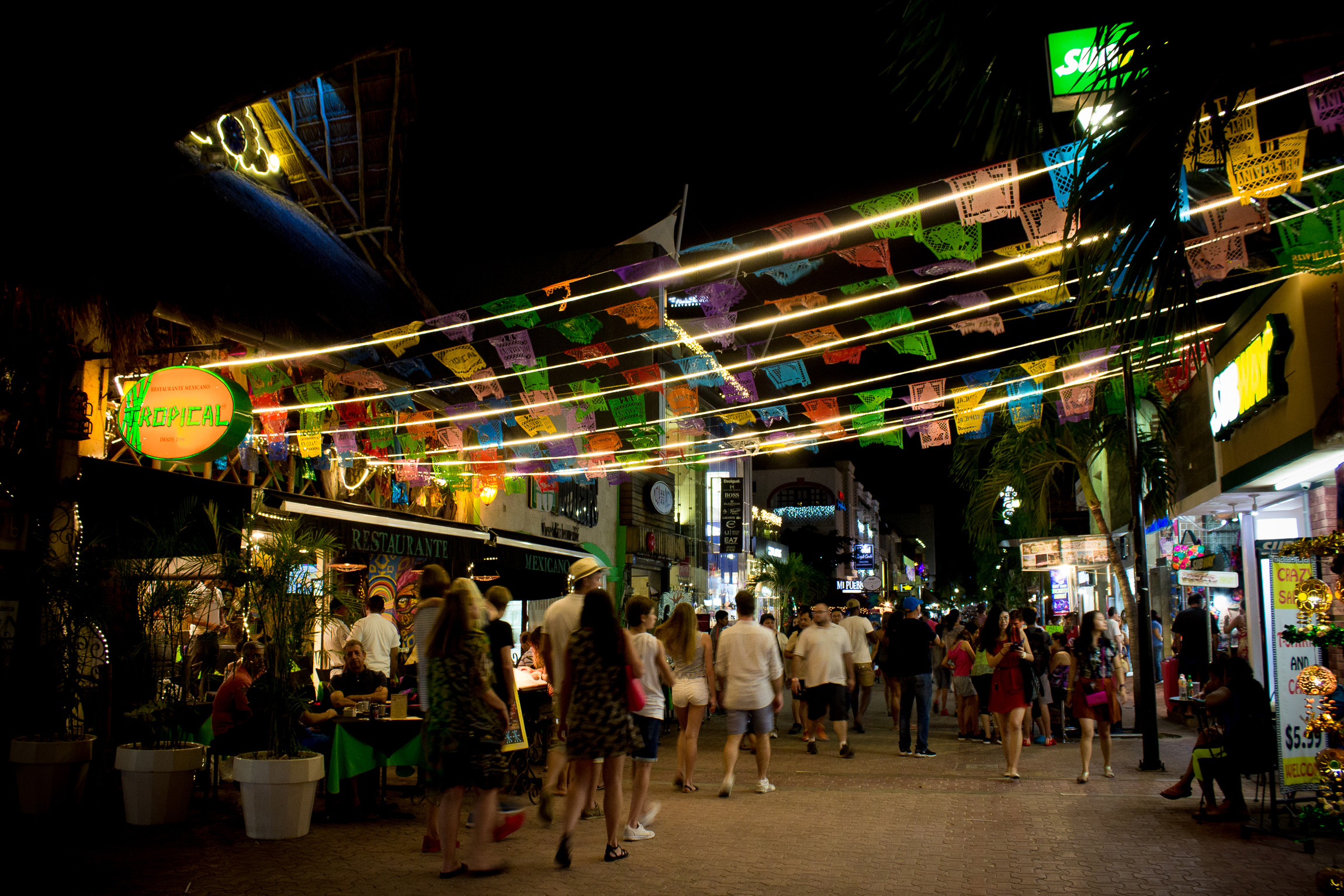 61228164. Playa del Carmen, Q.Roo. 28 Dic. 2016 (Notimex-Francisco Gálvez).- Gran afluencia de paseantes visitan el corredor turístico de la Quinta Avenida a unos días de que termine el 2016. NOTIMEX/FOTO/FRANCISCO GÁLVEZ/FRE/HUM/FIESTA16