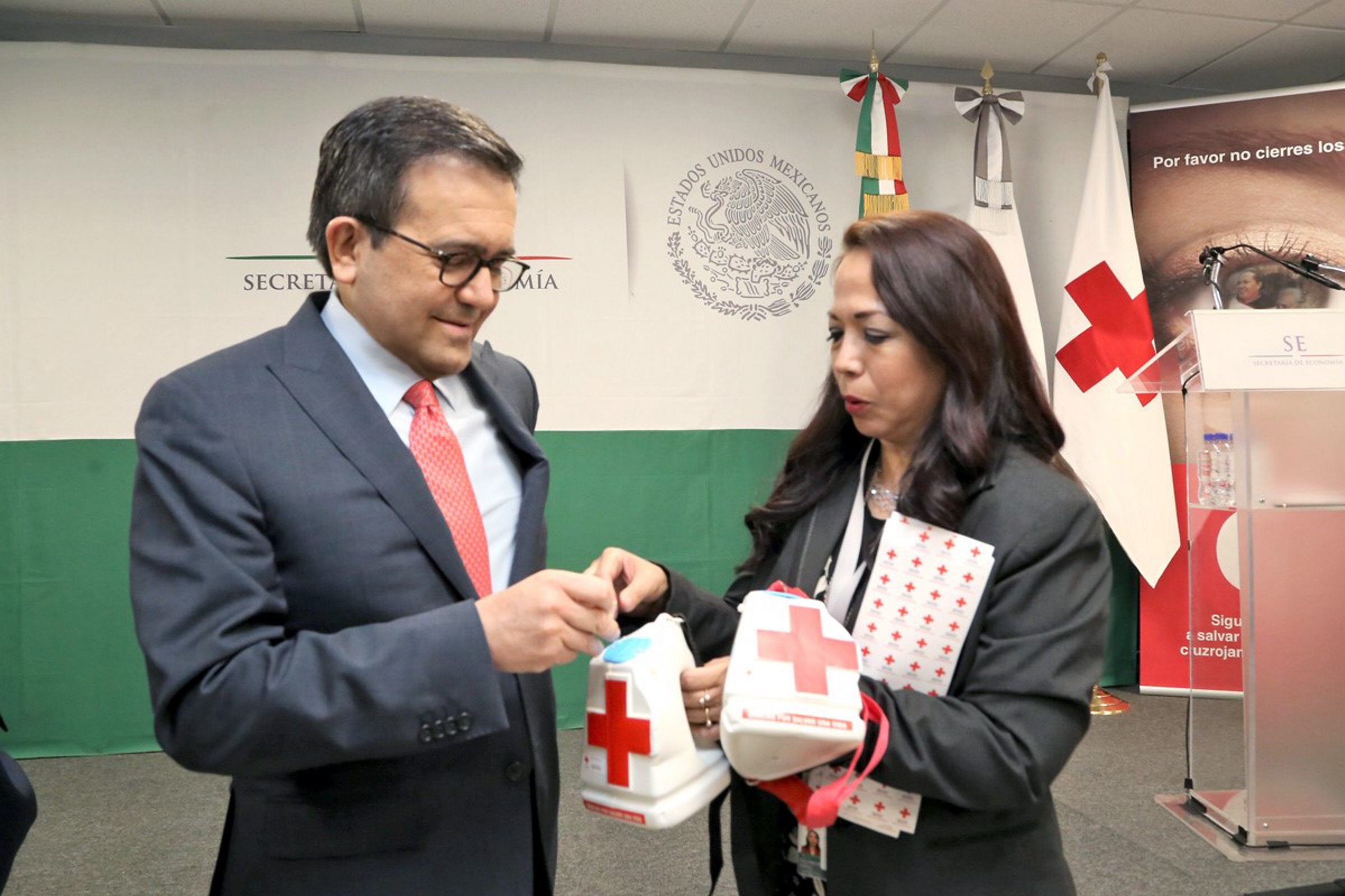 70328092. México 28 Mar 2017 (Notimex- Especial).- Inició en la Secretaría de Economía la Colecta Anual de la Cruz Roja Mexicana, con la presencia del Secretario Ildefonso Guajardo Villarreal y el Presidente Nacional de la Benemérita Institución, Fernando Suinaga Cárdenas. NOTIMEX/FOTO/ESPECIAL/COR/HUM