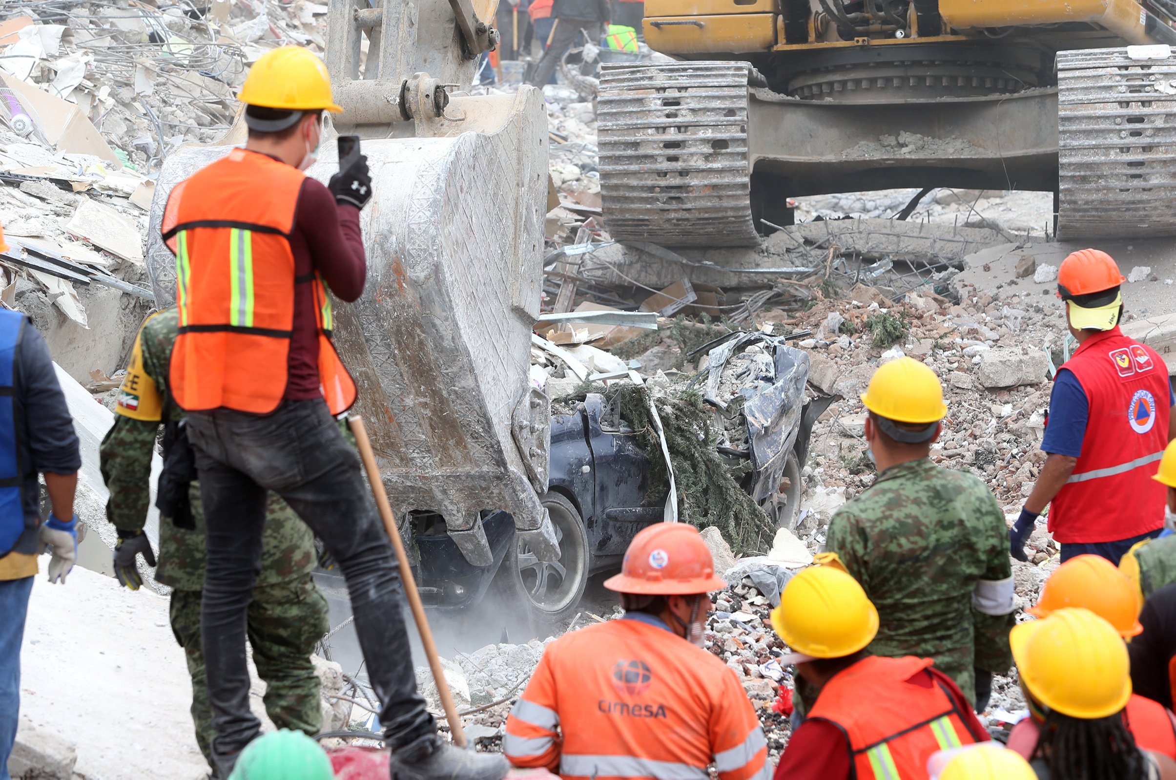 Mientras que en la valla que impide el paso a los civiles, una mujer que coordina el trabajo, no disimula en los ojos la angustia. El ruido de los equipos que no han parado de trabajar por horas se mezcla con su voz cuando grita «un rotomartillo¡ ¿quién va por un rotomartillo a la Glorieta de Insurgentes?».