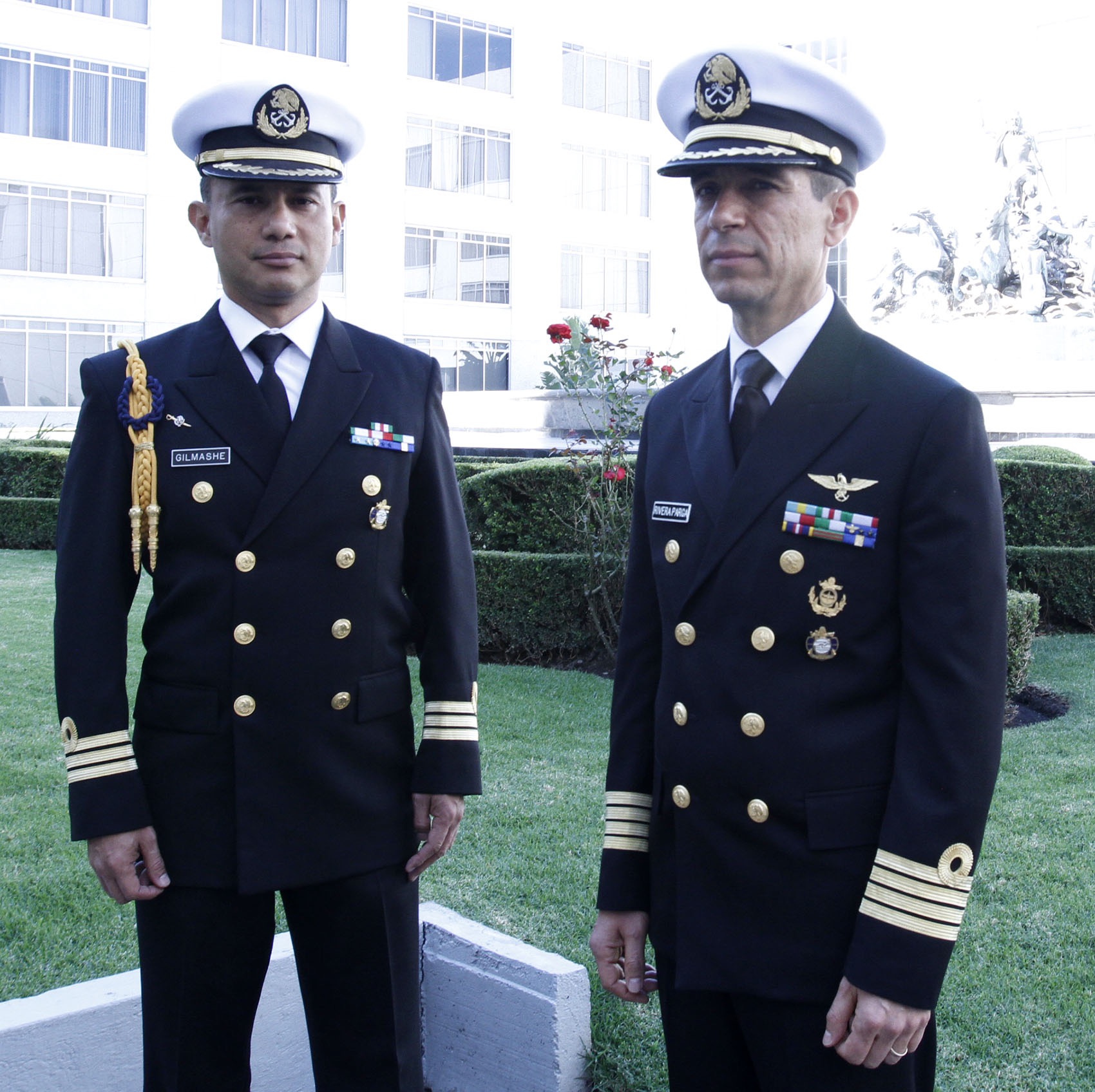 71122027. Colima, 22 Nov. 2017 (Notimex-Francisco García).- A 192 años de su creación, la Armada de México mantiene su “razón de ser”, que radica, precisamente, en servir de apoyo y ayuda al Pueblo de México. En la imagen los capitanes de Navío, José Ramón Rivera Parga, de Fragata, Gilmashe Antonio Sánchez Santín.