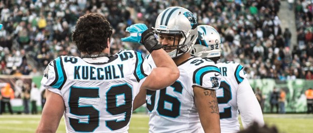 Primero, Kuechly recogió el balón suelto del quarterback Josh McCown, quien fue capturado por Wes Horton y le zafaron el balón de la mano mientras estaba por lanzar, con lo que el apoyador «felino» llegó hasta la zona de anotación.