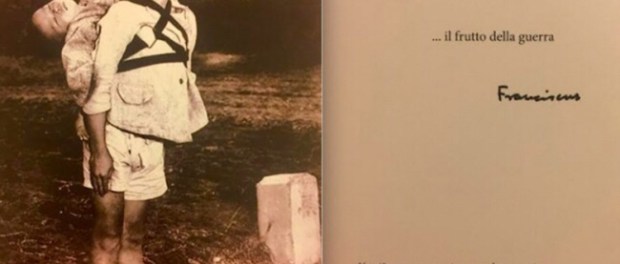 Ciudad del Vaticano.- A pocas horas de terminar el año 2017, el Papa Francisco pidió a la sala de prensa del Vaticano que distribuya su firma sobre una desgarradora foto que muestra a un niño que espera que sea cremado su hermano muerto por la bomba atómica de Nagasaki.
