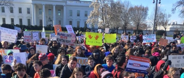 Durante 17 minutos exactos, la histórica avenida Pensilvania se convirtió en un gigantesco espacio de silencio, mientras los jóvenes se apostaron sobre la calle con pancartas en demanda de acciones urgentes contra la violencia de las armas.
