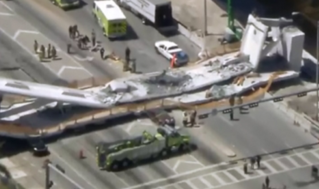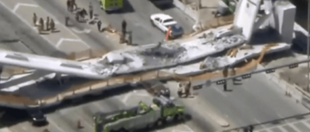El puente, cuya finalización estaba programada para 2019, colapsó sobre una cantidad aún desconocida de personas y por lo menos cinco autos quedaron atrapados debajo de toneladas de concreto.