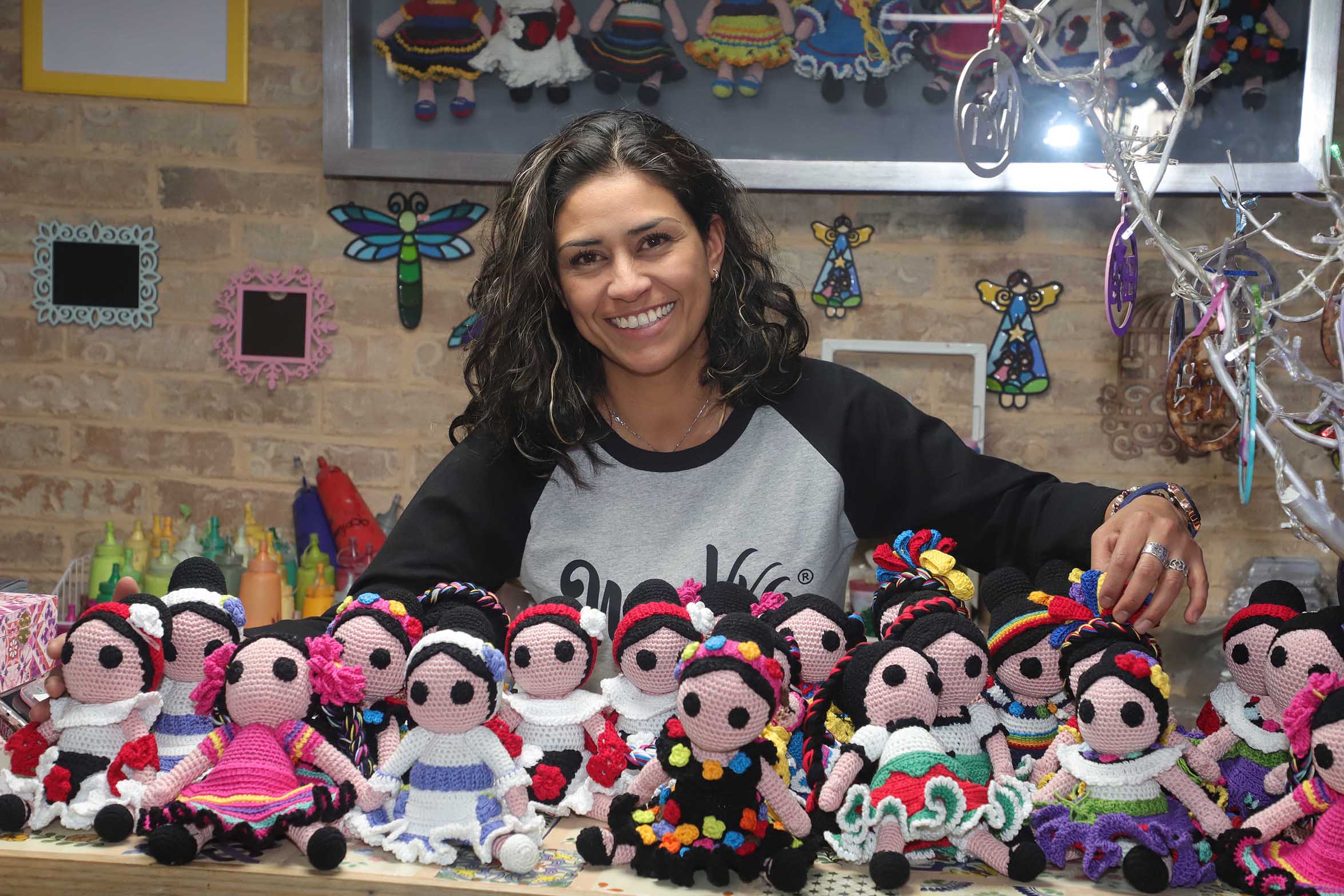 Las pequeñas muñecas que también toman las formas de tradicionales Adelitas revolucionarias y de la pintora Frida Kahlo requieren de al menos 20 horas para esperar muy sentadas en los aparadores de la firma familiar Mukka a que alguien se las lleve.