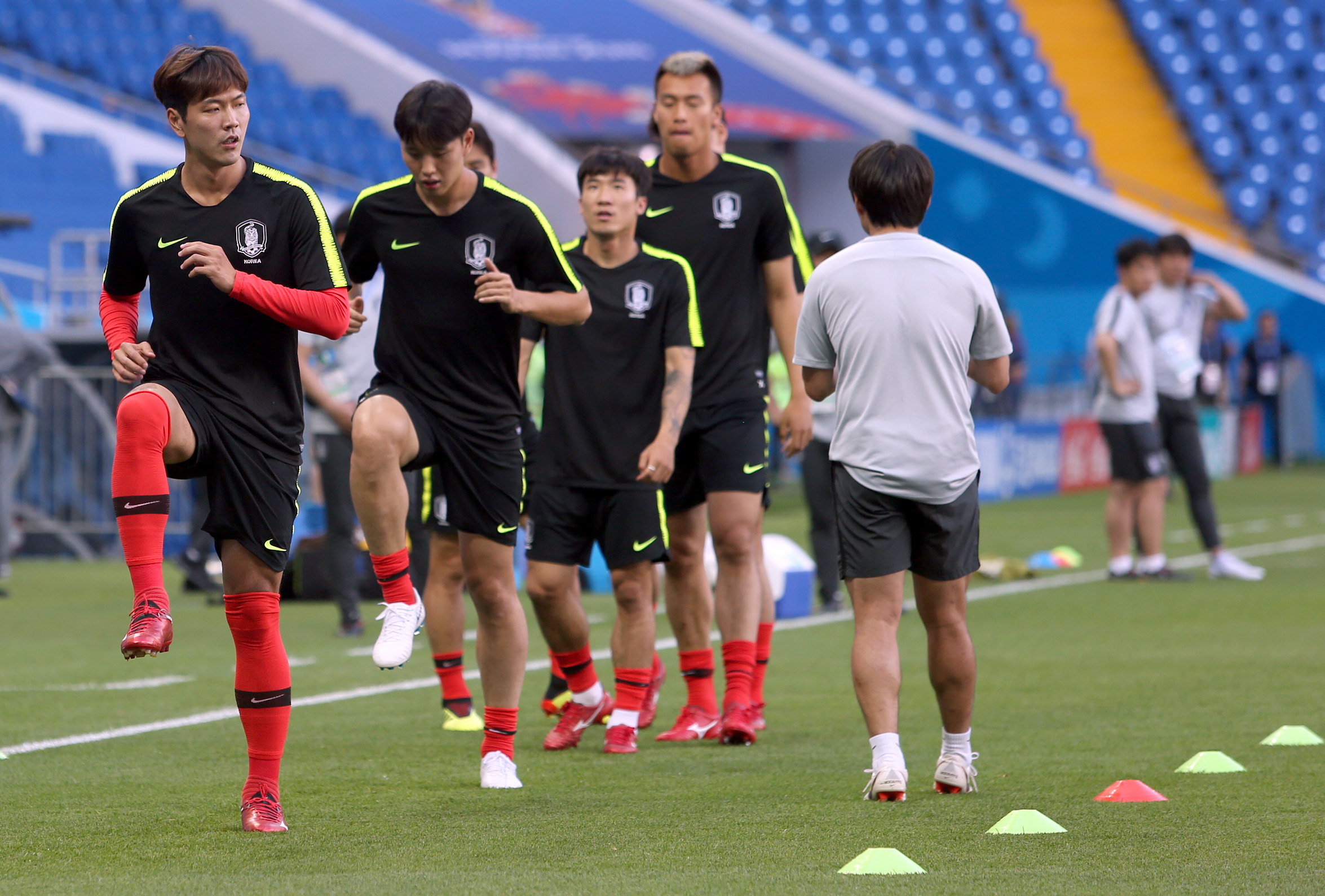 La selección de Corea del Sur entrenó esta tarde, previo a su duelo de mañana ante su similar de México, en el estadio Rostov Arena, en el marco de la Copa Mundial Rusia 2018. Foto: Notimex