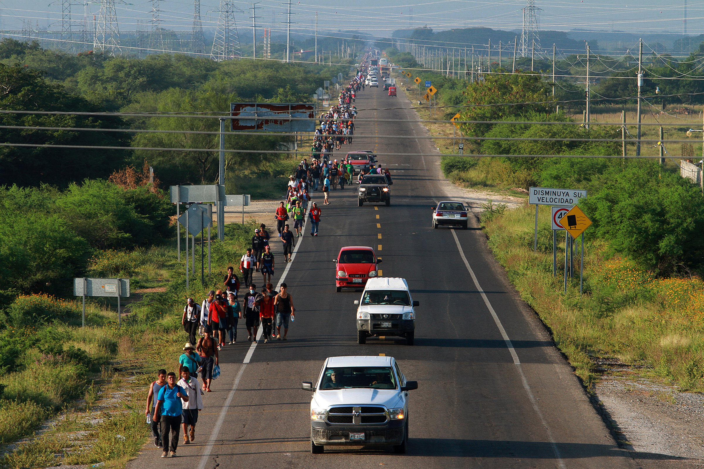 Cada vez caminan más dispersos, ya no son grandes grupos, pese a que ayer les pidieron avanzar juntos para que el peligro fuera menor. Hay unos que van hacia este municipio en autobuses que pudieron pagar, otros de «aventón» y unos más colgados en tráileres.