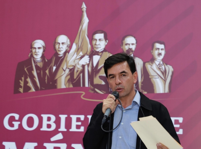 Expuso que la imagen principal está compuesta por cuatro elementos: cinco héroes de la Patria reconocidos por todas las generaciones, las palabras Gobierno de México emplazadas en dos líneas, el Escudo Nacional y una textura de fondo de plumaje.