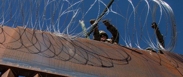 Personal de la Oficina de Aduanas de Protección Frontera de Estados Unidos colocó alambre de púas en la parte superior del muro fronterizo. Foto: Notimex
