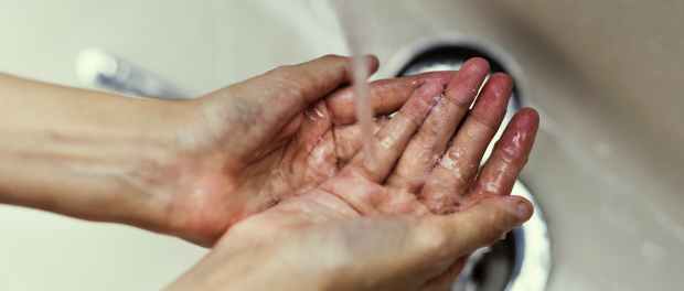 La imagen de unas manos sobre un lavabo y el agua cayendo para el lavado, acompañó las recomendaciones para el cuidado de la salud.