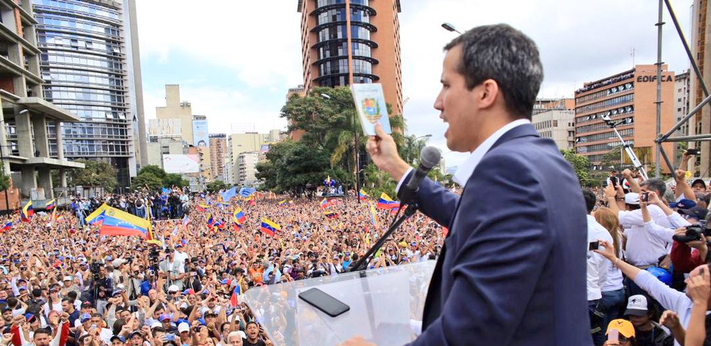 Caracas.- El presidente de la Asamblea Nacional de Venezuela, Juan Guaidó, se autoproclamó hoy como presidente encargado del país, ante miles de venezolanos concentrados en esta capital.