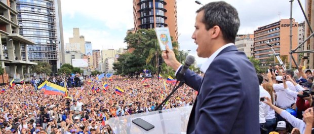 “Asumo la responsabilidad bajo el artículo 333 y 350 (de la Constitución de Venezuela”, argumentó Guaidó, en una concentración multitudinaria en la plaza “Juan Pablo II” de Chacao, que se manifiesta contra el régimen del presidente de Venezuela, Nicolás Maduro.