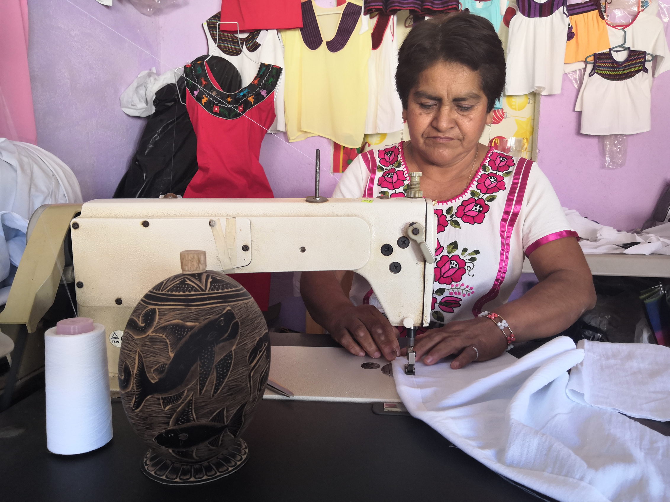 Es aquí, en el Barrio de las Piedras, donde vive Doña Felipa, una mujer de unos 50 años de edad que con la ayuda de su máquina de coser combina la prenda de la mujer mixteca, el Pozahuanco, también llamado enredo, con nuevas telas.