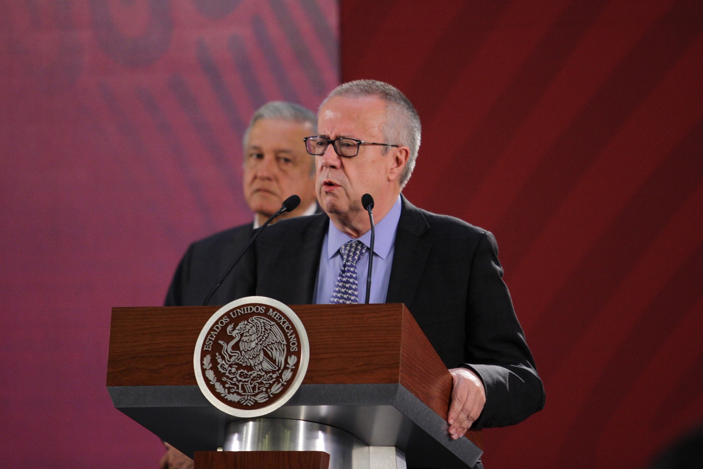 El ahora exsecretario de Hacienda y Crédito Público, Carlos Urzúa, durante una conferencia matutina del presidente Andrés Manuel López Obrador. Foto: Notimex