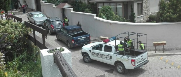 La Secretaría de Relaciones Exteriores (SRE) difundió imágenes de la embajada de México en Bolivia en las que se aprecia qué hay militares y policías rodeando la sede diplomática. Foto: Notimex