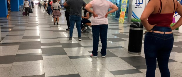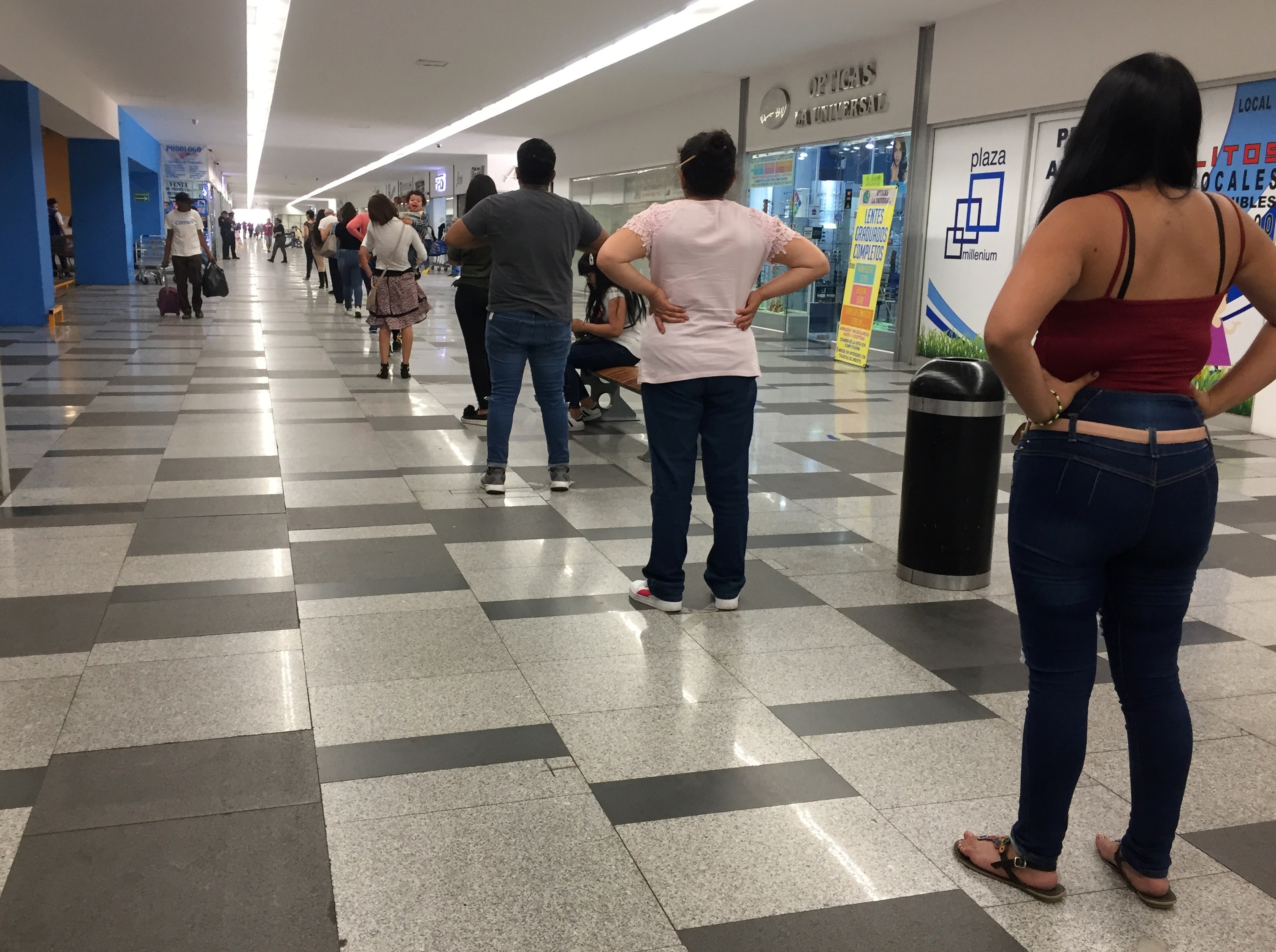 Consumidores esperan en fila para ingresar a un centro comercial debido a la contingencia. Foto: EFE