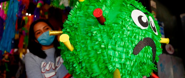 Una gran bola verde con cara malvada y las espigas propias del coronavirus comparte escaparate estos días con las tradicionales piñatas con forma de estrella y las que representan a los personajes favoritos de los niños, Pikachu y Spiderman incluidos.