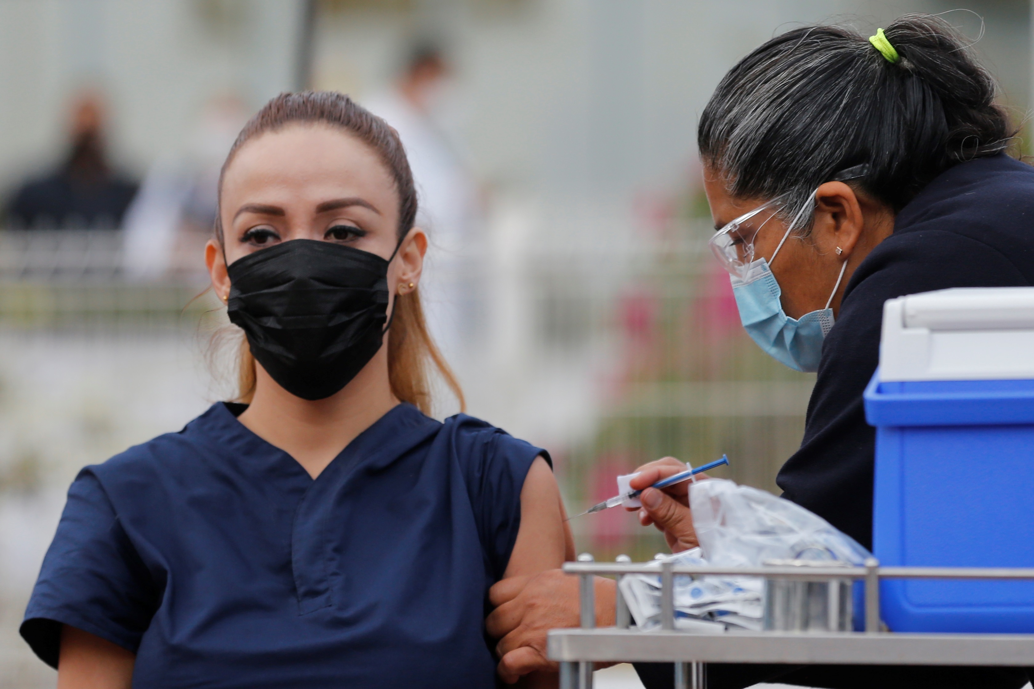 Una mujer recibe la vacuna contra la Covid-19, en el Hospital General en la ciudad de Guadalajara, Jalisco. Foto: EFE
