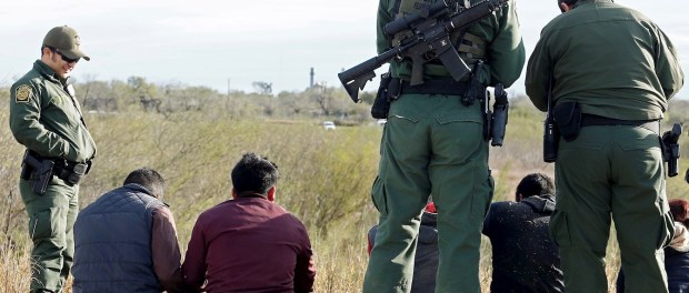 Guardias fronterizos de EUA detienen a inmigrantes centroamericanos que trataban de pasar ilegalmente la frontera por Texas.