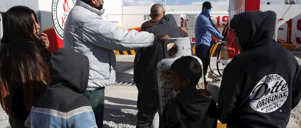 Un grupo de personas hace fila hoy en busca de gas butano dada su escasez debido al intenso frío en Ciudad Juárez, Chihuahua. Foto: EFE