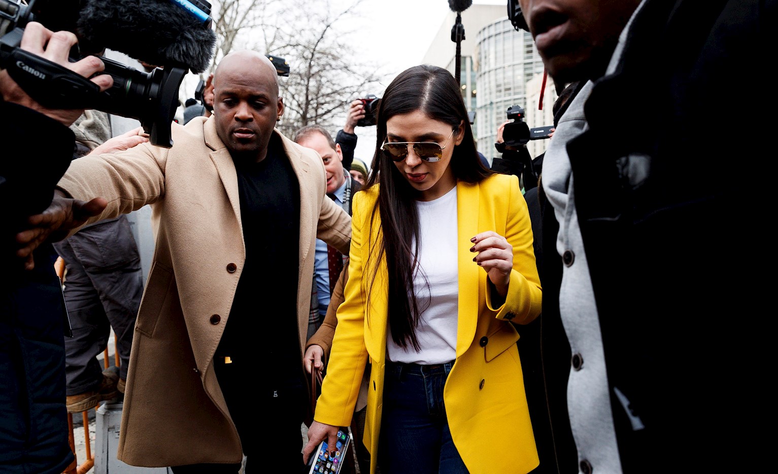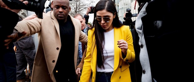 Emma Coronel Aispuro, al salir de la corte durante el juicio de su esposo, Joaquín 'El Chapo' Guzmán, en el Tribunal Federal de los Estados Unidos, en Brooklyn, Nueva York. Foto: EFE