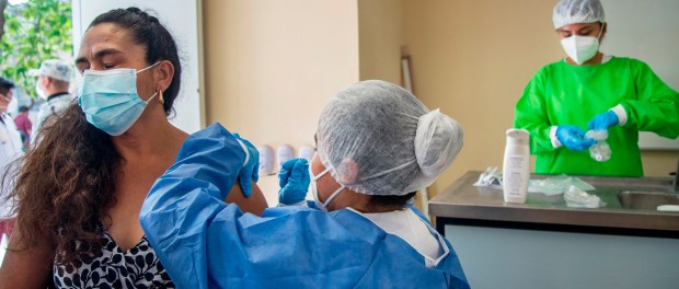 Personal médico aplica la vacuna CanSino contra la COVID-19 a maestros de la educación, hoy en la ciudad de Juchitán, en Oaxaca. Foto: EFE