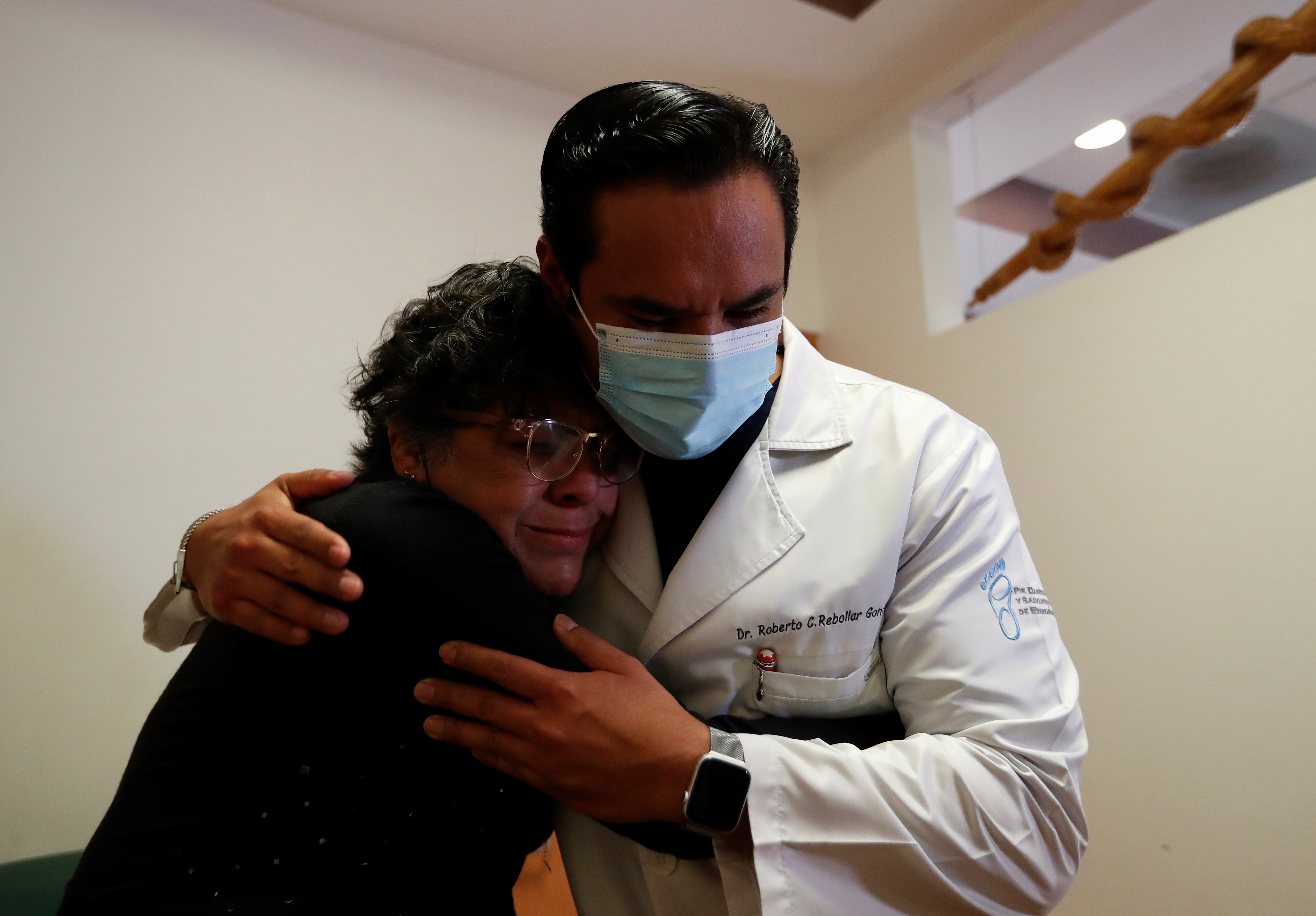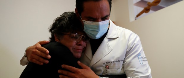 El doctor Roberto Carlos Rebollar abraza a su paciente, la señora Rosalía Azunción en un hospital de la Ciudad de México. Foto: EFE